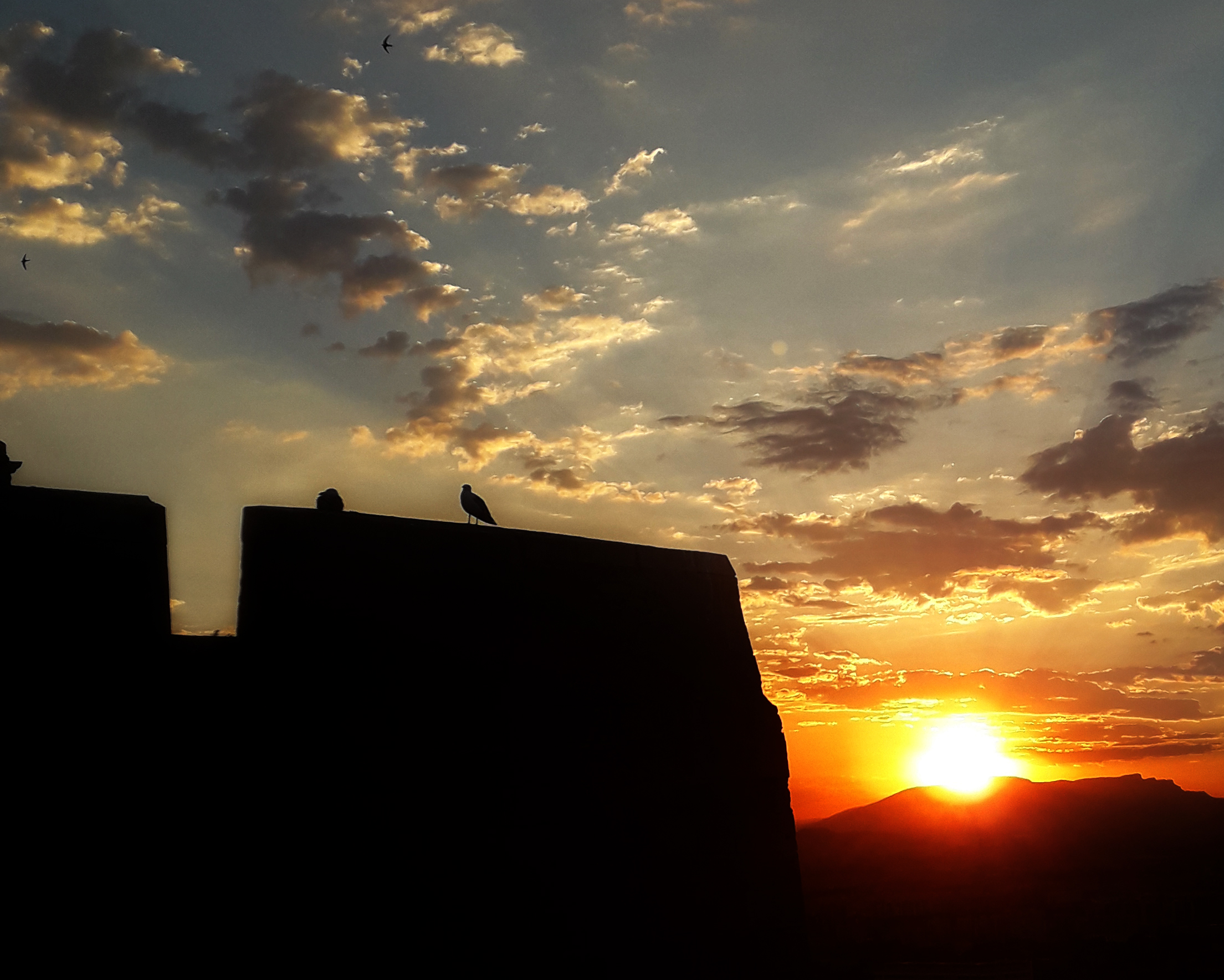 Sabes que la luz desaparece, que no será eterna, y sabes que este día se acaba. Esperas expectante pero sereno, como si después de miles de rayos contemplados a lo largo del día éste fuera el más brillante pero no es así. Calmado, cada vez más apagado, produce sombras y colores que en ningún otro momento del día alcanzaste a ver, naranjas, rojos, púrpuras y azules. Es hora de recoger toda la luz y despedirse hasta otro día, quizá el último, es por ello que se resiste a dar su último vapor de vida.