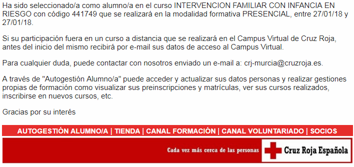 El domingo 25 de febrero de 2018 me llegó un correo de Adecco que me pareció bastante disparatado, ser CEO de la compañía durante un mes, aunque parecía absurdo, era cierto, y si bien es cierto que la competencia sería brutal, ¿Por qué no solicitarlo?. El viernes 20 de abril de 2018 recibí la noticia de que no me habían seleccionado. - Adscribirme a un programa de Cruz Roja como Voluntario