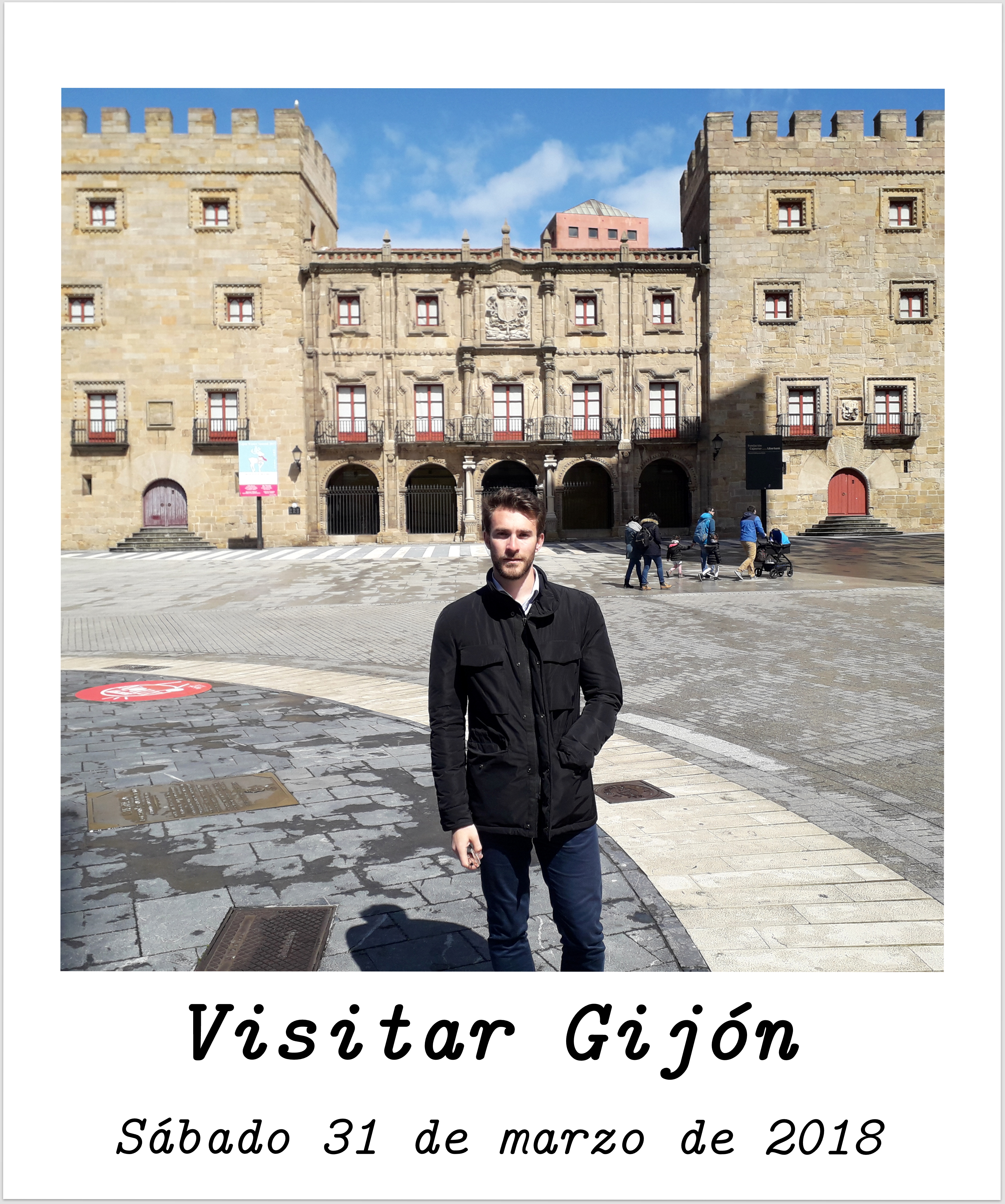 El sábado 31 de marzo de 2018. Aparcamos en la calle Dr. Fleming al lado del parque de Isabel la Católica. Hacia bastante mal día pero fuimos caminando por el paseo marítimo, paramos para tomar un café y seguimos por la Avenida Rendueles. Llegamos finalmente a Cimadevilla y allí encontramos las Termas Romanas, la Parroquia de San Pedro Apóstol, el Ayuntamiento, la Fontica y las Baterias de Santa Catalina, el Elogio del Horizonte de Chillida. Bajamos hasta el puerto deportivo de Gijón para descubrir hasta la plazuela del Marqués, la Casa Paquet, el Árbol de la sidra, el Palacio Revillagigedo y la estatua de Pelayo. Dimos un paseo por plaza mayor y vimos los antiguos restos de la muralla junto con la Casa Museo de Jovellanos y la Capilla de Nuestra Señora de los Remedios hasta que decidimos comer en la Galana, un restaurante en plaza mayor. Después de una exquisita comida volvimos hacia Oviedo, pero esta vez conduciría yo. Tuvimos un ligero contratiempo en una cuesta que supe salvar con bastante buen acierto y llegamos sanos y salvos a Oviedo. Visitar Gijón. - Volver a Madrid