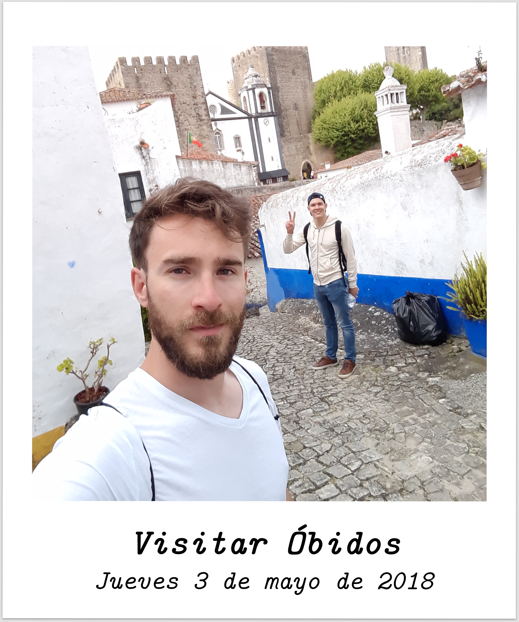 El jueves 3 de mayo de 2018 después de salir de Nazaré llegamos a Óbidos. Un pequeño pueblo amurallado con mucho encanto. Lo primero que hicimos fue recoger casi toda la muralla de la ciudad prácticamente intacta para apreciar los paisajes y la propia ciudad desde los muros. Después de andar brevemente por la ciudad decidimos comer porque ya era tarde, por fortuna encontramos un sitio y comimos tremendamente bien, cosa que se repetiría durante todo el viaje. Más descansados, esta vez sí nos perdimos por las calles de Óbidos, compramos souvenirs y probamos el trago de Ginja tan popular en Óbidos, en su típico vasito de chocolate. Era un licor de cerezas muy dulce que verdaderamente merecía la pena probar.