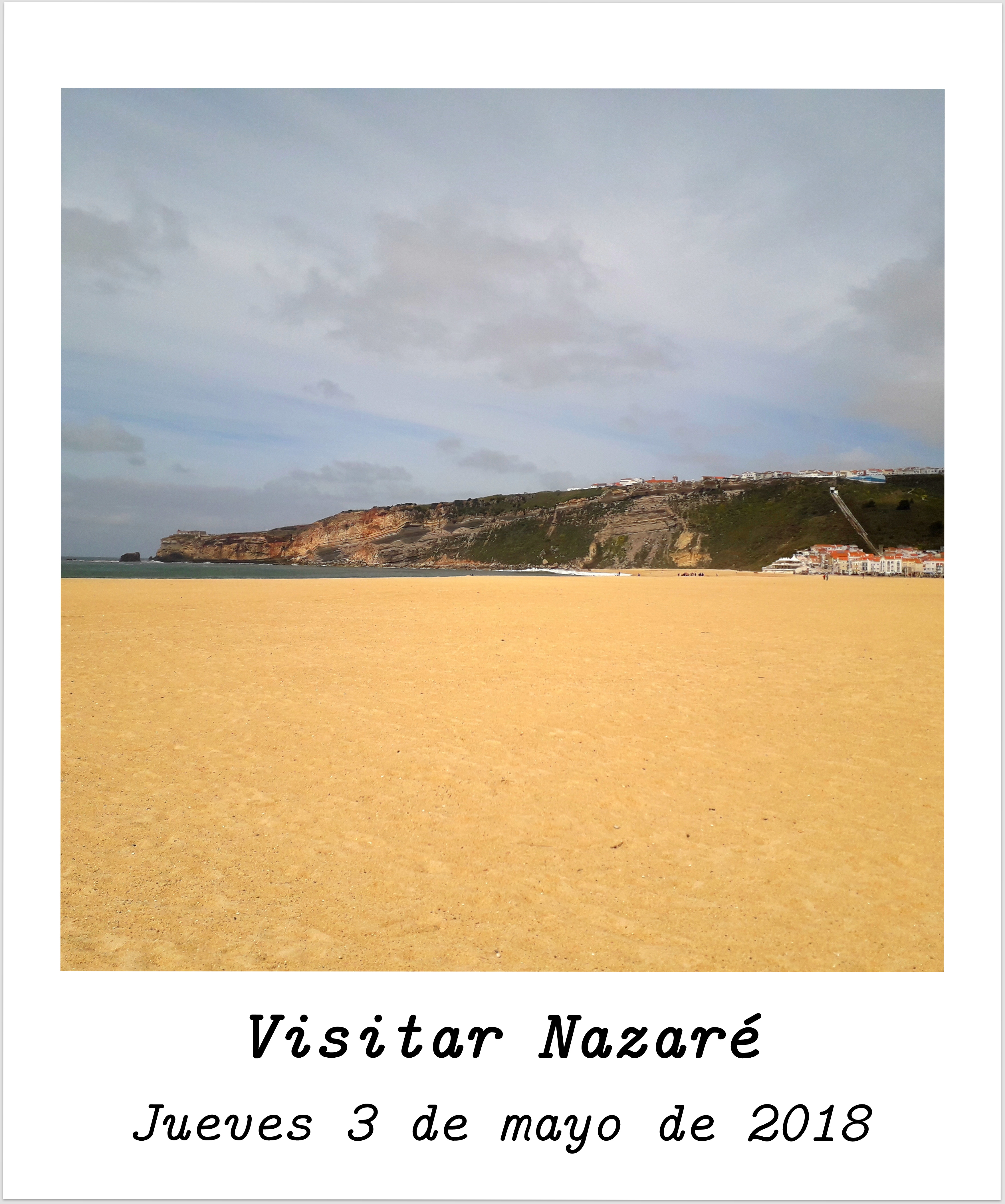El jueves 3 de mayo de 2018 salimos de Coimbra dirección Lisboa, como nos pillaba de paso, hicimos una parada en Nazaré. Nazaré es un pequeño pueblecito costero que saltó a la fama por la altura de sus olas y el surf. Ese día nos pillo mal tiempo y también oleaje, que aunque nada tenían que ver con las olas de 23.8 metros de altura del record Guinness si que hacía imposible el bañarse. Después de hacer un alto y reponer fuerzas tomando algo volvimos a la carretera dirección Óbidos. Visita Nazaré. - Visitar Óbidos