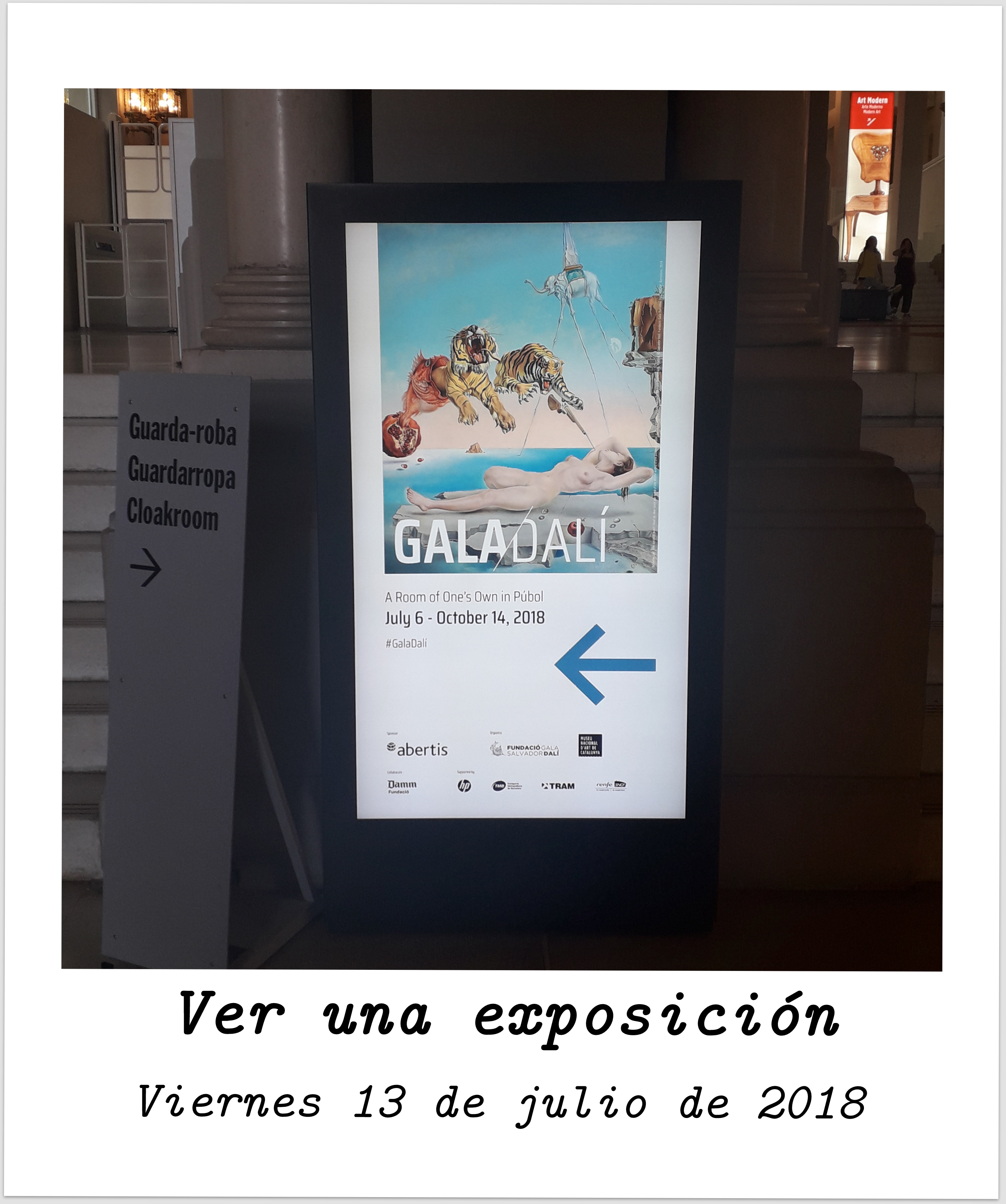 El viernes 13 de julio de 2018 fui al Museo Nacional de Arte de Cataluña a ver la exposición sobre Gala y Dalí. Verdaderamente quedé asombrado sobre la historia, o quizá el entramado que Gala y Dalí eran, y el gran significado que aporta Gala al movimiento surrealista dentro de la vida del pintor. El papel de Gala, que aparece en un segundo plano, callado, silencioso, brota por todas partes en forma de inspiración y musa, me gustó mucho el enfoque de la exposición pues da un papel protagonista a Gala de una forma muy sutil enlazándolo con la vida de Dalí. Ver una exposición - Emprender una aventura