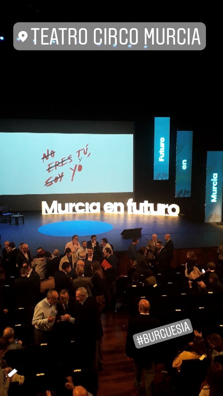 El martes 16 de octubre de 2018 en el teatro circo, donde asistieron los ponentes Sita Abellán, Gustavo Entrala, Sonia Ruiz, Andres Pedreño, Javier Peña y el alcalde José Ballesta. Fue un aire refrescante a lo que estaba acostumbrado en la política murciana, no obstante, no dejaba de ser lo mismo con un perfume diferente. Se hablaba de innovación cuando no era más que plagio, parecía nuevo por el retraso tecnológico que tiene Murcia con respecto a otras zonas más favorecidas pero hablar de inteligencia artificial no es hablar de innovación. Además me hubiera gustado que se le hubiera dado cabida el pueblo murciano, todas aquellas voces que desean cambiar la ciudad y no son escuchadas. Murcia en futuro - Hacerme el carnet de la biblioteca