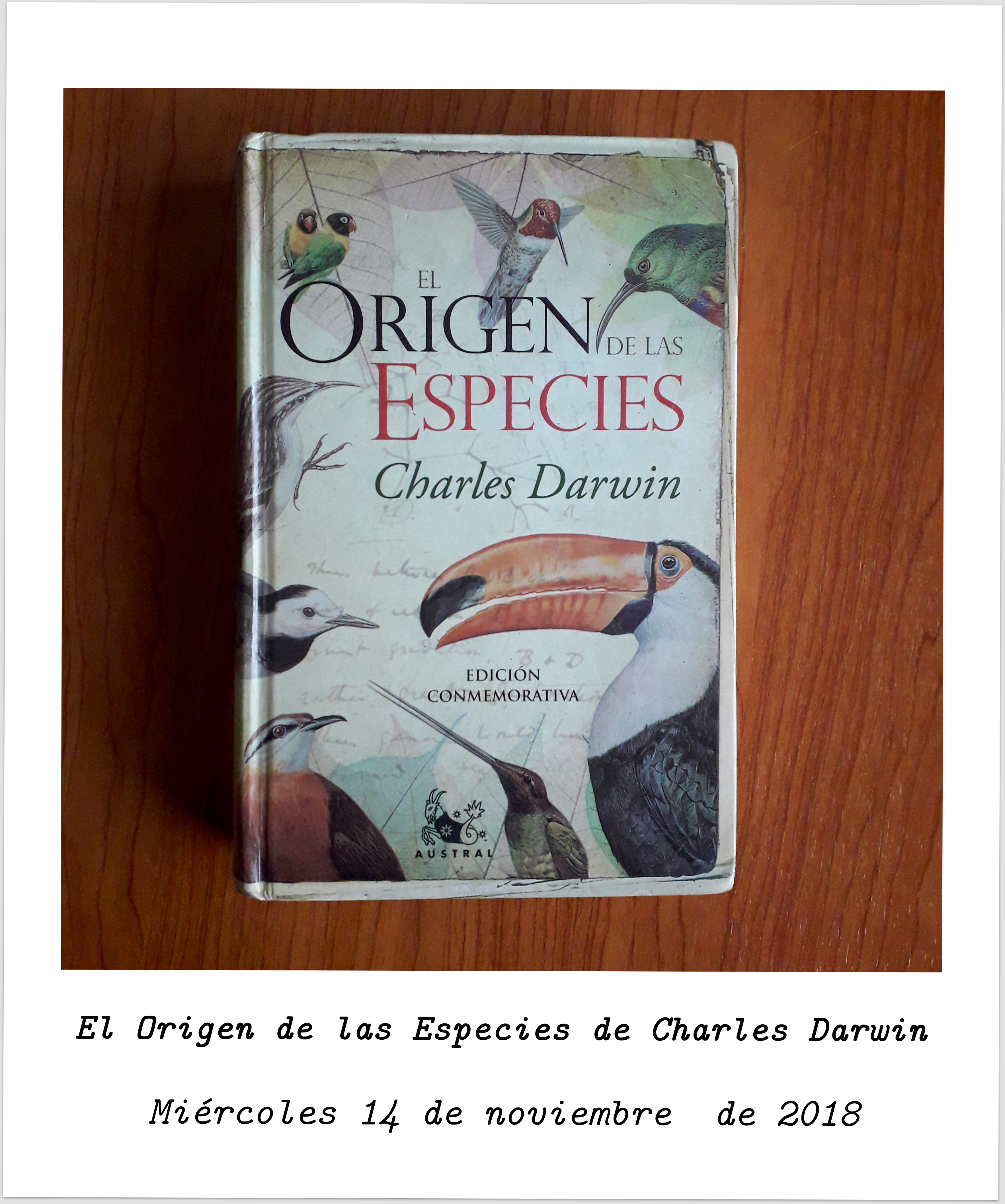 El miércoles 14 de noviembre de 2018 terminé de leer el Origen de las Especies de Charles Darwin. Realmente ha sido una de las lecturas más complejas que he leído en materia biológica en los últimos años, debido a su extensión, temática y complejidad del contenido. La edición que compré fue la última que se escribió debido a las numerosas que se hicieron a posteriori de la primera edición. Obviamente algunas de las cosas que aparecen en el Origen de las Especies, hoy no tienen cabida, o simplemente son erróneas, pero otras muchas siguen teniendo plena vigencia. Una lectura más bien tosca que solo recomendaría a quien de verdad tenga mucho interés por una parte más histórica que rigurosamente biológica de la evolución de la ciencia y sus premisas. Realmente después de leerlo sentí alivio al haberlo terminado porque llevaba más de 5 meses leyéndolo. El Origen de las Especies de Charles Darwin - Leer el sentido del asombro