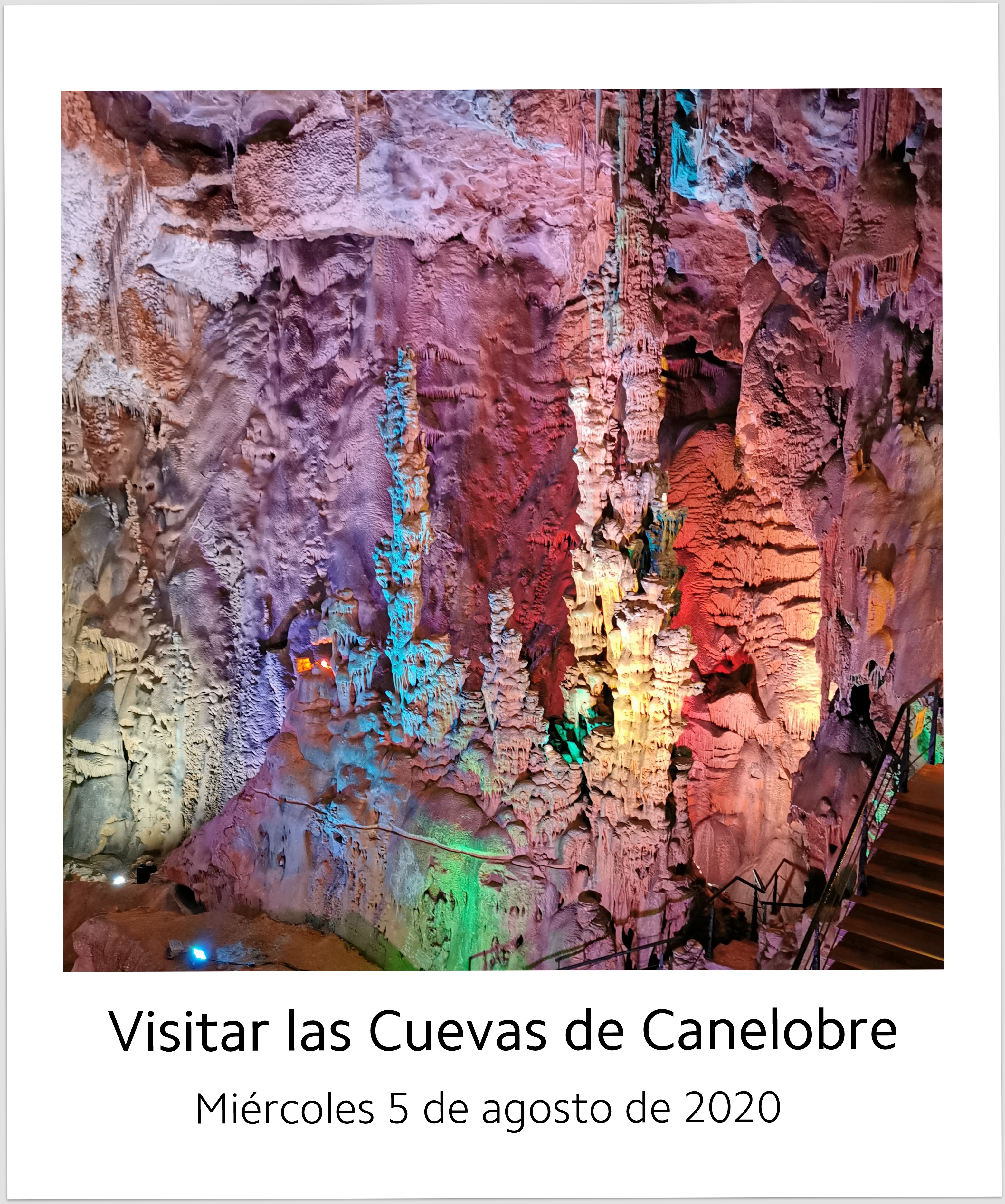- Visitar las Cuevas de Canelobre: El miércoles 5 de agosto de 2020 fuimos Quique y yo a las cuevas de Canelobre, era pleno verano pero allí hacía fresco. Las vistas del mirador eran inmejorables además de tener unas salas en el exterior que te explicaban parte del actividad que se había desarrollado en aquellas cuevas durante la guerra civil. El interior se puede visitar por unos modestos 4.5 € si tienes carnet joven pero merece la pena por las espectaculares vistas del interior. Cuevas de Canelobre