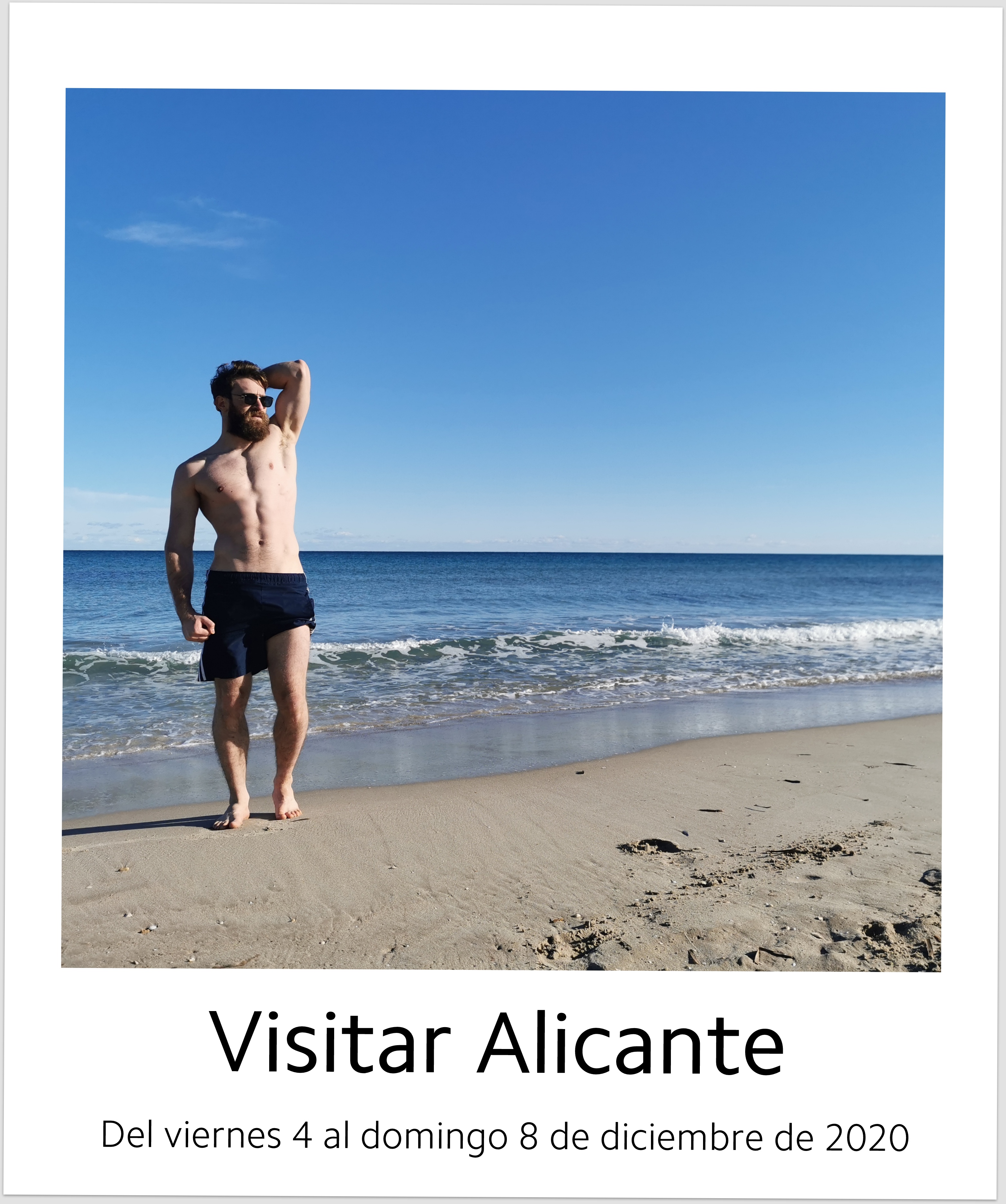 - Volver a Alicante: Del viernes 4 al domingo 6 de 2020 fui a visitar a Marco para preparar mi curso de inglés, mejorar mi speaking, mi writing y focalizar un poco cual sería mi estrategia para afrontar el examen de C1 que quería realizar en 2 años. Por otra parte, aproveché para disfrutar del tiempo, pensar, sentir la brisa y el mar. También me vi con Enrique que hacía tiempo que no nos veíamos. Darle fuerzas y que él me diera también las suyas. Visitar Alicante