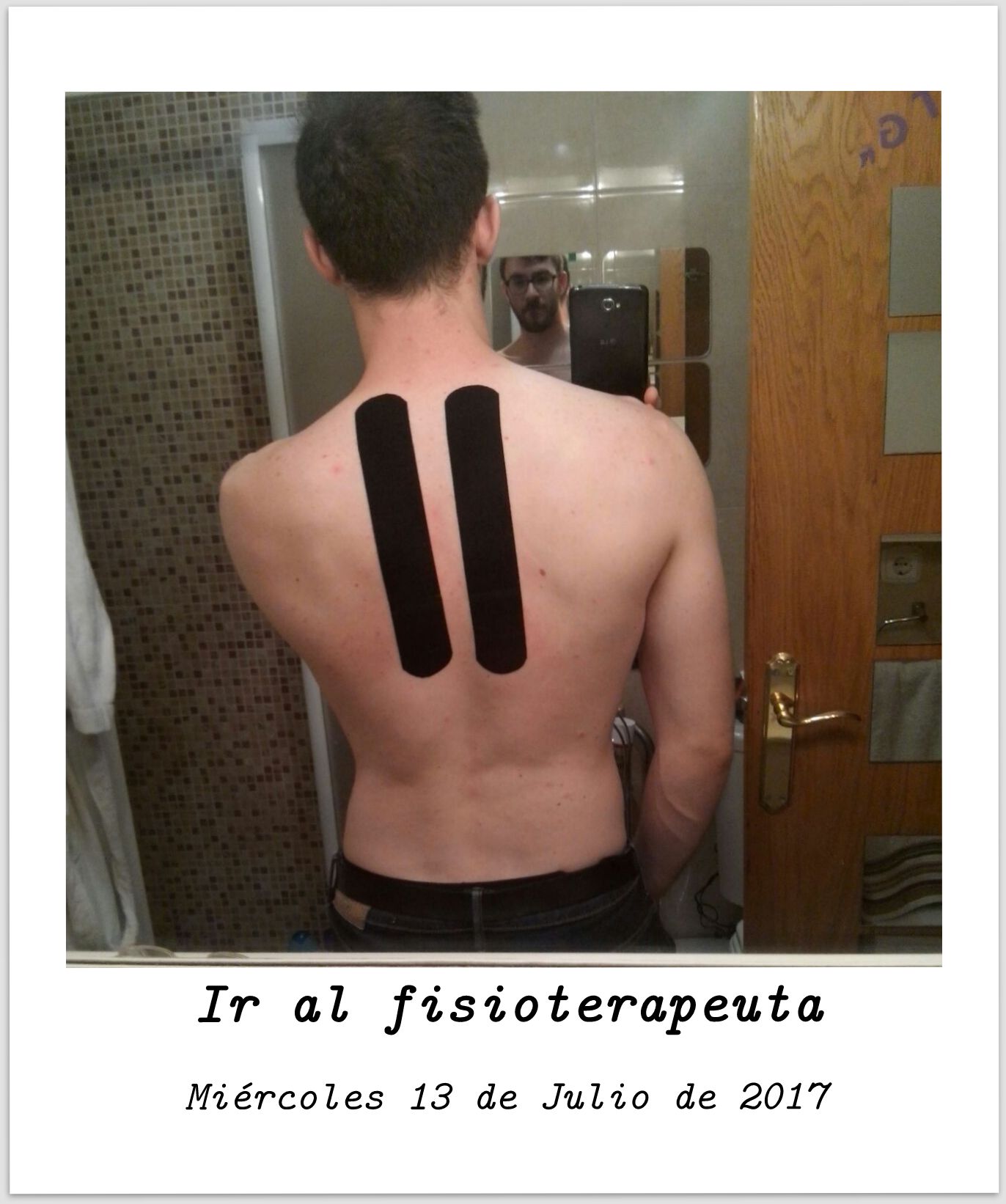 El miércoles 13 de Julio de 2017 fui al fisioterapeuta, llevaba tiempo con un fuerte dolor en la espalda, también promovido por el tiempo que llevaba en mala postura de estudio con la realización del Trabajo de Fin de Máster. Finalmente me decidí a ir una clínica que mi hermano me había recomendado. Después de la sesión me quedé mucho mejor, antes de irme me pegaron dos bandas en la zona de la lesión para me aliviara el dolor. Ir al fisio. - Muerte de mi abuela