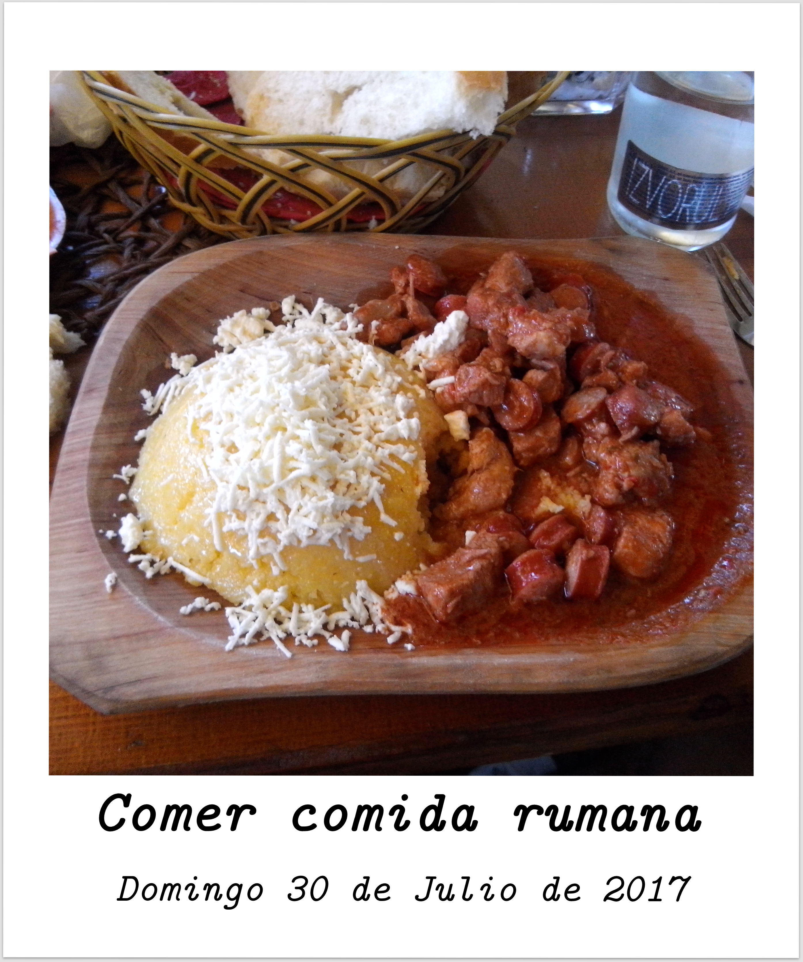 El domingo 30 de julio de 2017 comimos en la ciudad de Hațeg, el día anterior había visto comer a Atti Tochitură cu mămăliguța, no diré lo que lleva ni a qué sabe pero diré que estaba muy bueno, me llenó para todo el día y hay que probarlo si se va a Rumanía. Comer comida rumana. - Visitar Sarmizegetusa