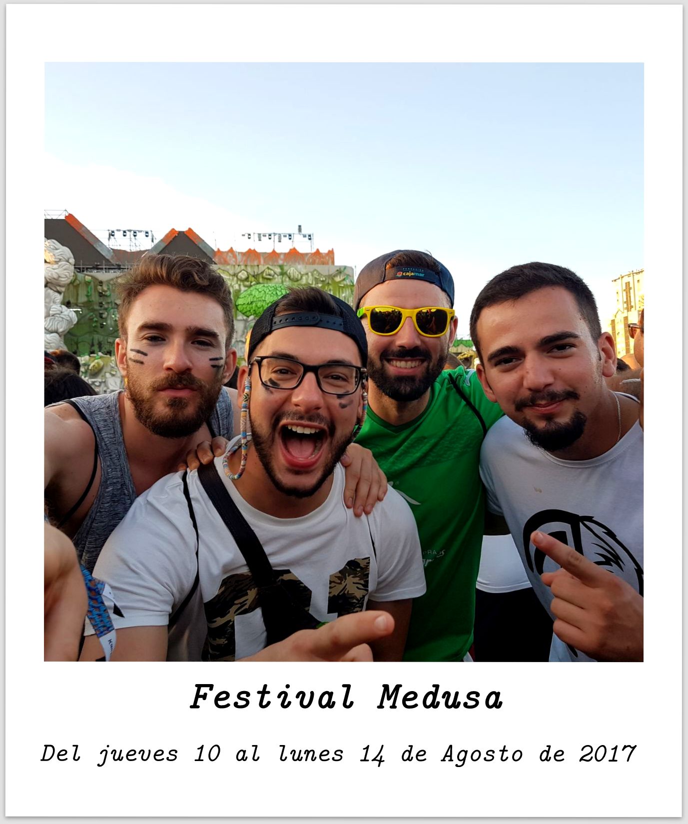 Del jueves 10 al lunes 14 de Agosto de 2017 fui al medusa como había programado el año anterior con Bryan. Fue un experiencia muy de perroflautas pero increíble, yo era la primera vez que hacía algo del estilo, conciertos, camping, fiesta, bebida. Los saltos que nos pegamos con Alesso, Hardwell o Steve Aoki entre tantos hicieron noches inolvidables, las cenas en nuestra mesa de camping y la compañía de Bryan, Ana, Dario, Alicia, Isa y Jose hicieron de esta experiencia una experiencia que todo el mundo debe hacer aunque solo sea una vez en la vida. Festival Medusa. - Ir a un cine de verano a ver una película en versión original