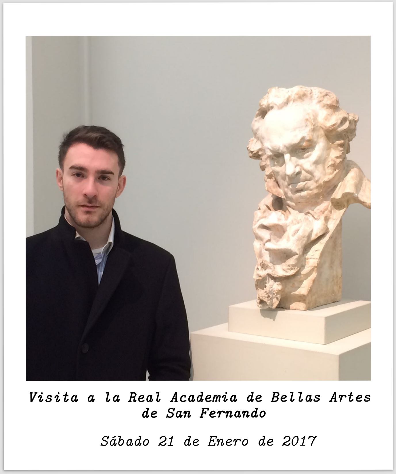 El Sábado 21 de Enero de 2017 en la mañana fuimos al Museo de San Fernando, una fusión ecléctica de estilos desde el renacimiento hasta el siglo XXI con estilos de diferentes escuelas y piezas de lo más variadas desde pinturas, esculturas y dibujos hasta fotografía, orfebrería y muebles, cabe destacar trece pinturas de Goya y los doscientos veintiocho cobres abriertos al aguafuerte del mismo además de una importante biblioteca.